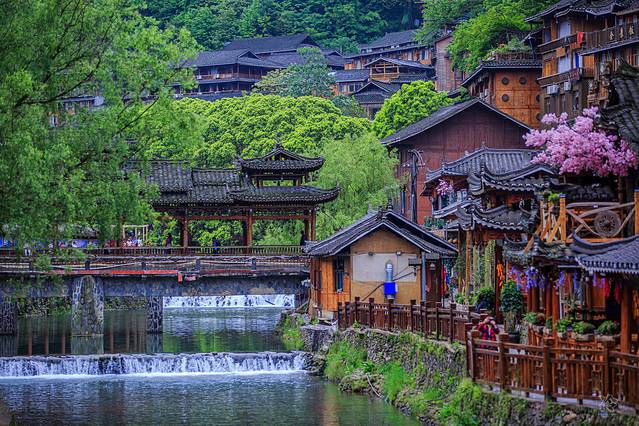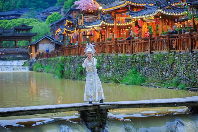 这座(目前)地球上最大的苗寨集万千宠爱于一身:铺满山坡的吊脚楼,入夜后如神秘星辰般的点点灯光,以及无论何时都能看上的民族节目,让这个巨型民族主题公园满足了外乡人对远方秘境的各种想象。