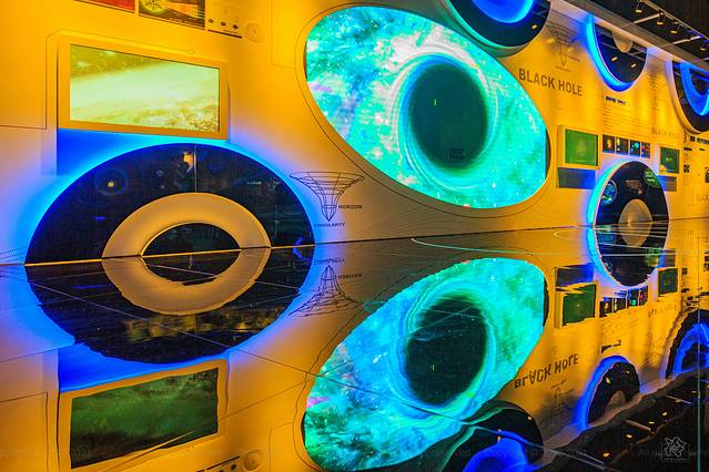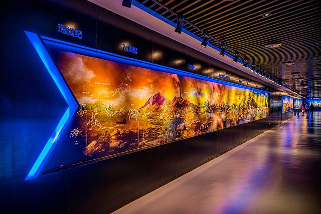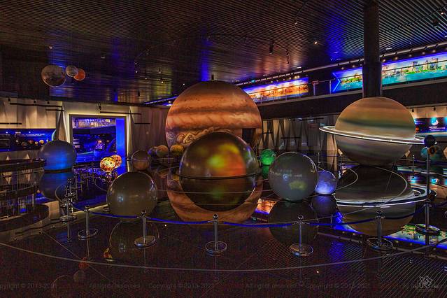 整个天文科普区诗意而神秘,丰富而开阔。该展区模拟真实的宇宙空间,展示有壮丽太阳系多星体的宏大景象。八大行星根据距离太阳的远近,进行布置。每位参观者都如同穿行于宇宙的小天体,漫步太阳系其中。