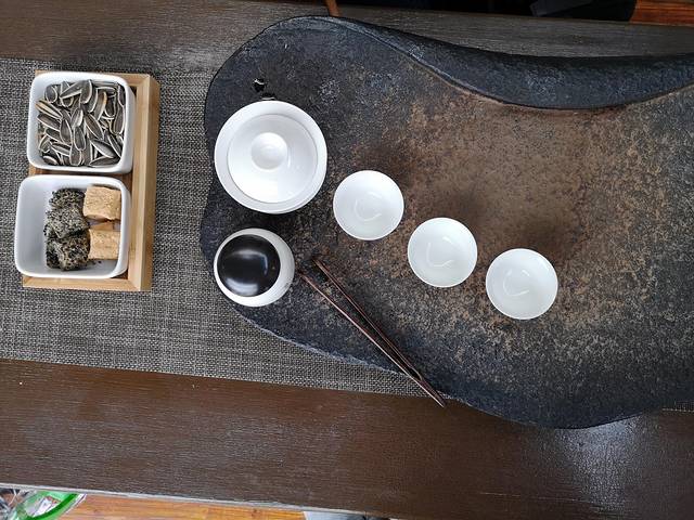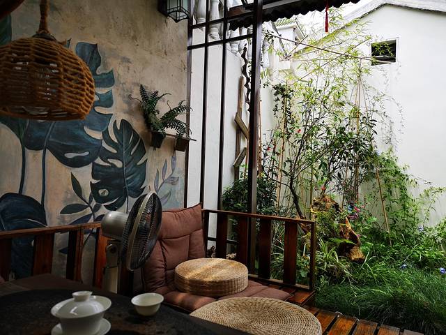 这家茶店是一对夫妻开的,退休闲着,把自家老屋改造装修后做起来了。此时天气热又很晒,在这里吹着风扇,喝着茶,感受一些潮州的茶文化。