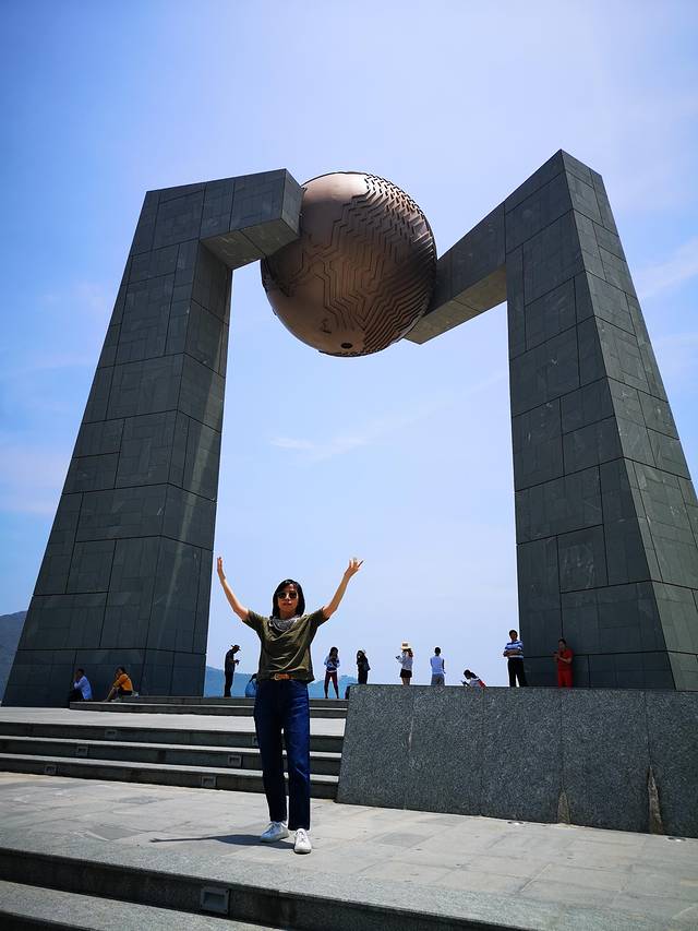 “自然之门”,是南澳北回归线标志塔,是迄今我国建成的11座北回归线标志塔之一,处于北回归线与我国大陆东岸的交点处,是唯一一座位于海岛上的北回归线标志塔。北回归线,是太阳在北半球能够直射到的离赤道最远的位置,在北纬23度26分21.448秒。每年夏至正午,当太阳直射北回归线时,日影将穿过“自然之门”上方圆球中心圆管,投射地台中央,达到“立杆不见影”的效果。