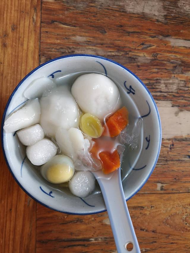 鸭母捻,十元一碗,是“胡荣泉”的招牌甜品小吃。因为煮好的汤圆浮起来,如同白色的鸭蛋,这两个汤圆馅还不同,但口味实在一般,太甜,不会再想着吃。