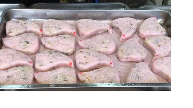 出了龙北裕记烧鹅店,马路对面就是老潮兴,是一家汕头老字号粿品店,其潮式粿品制作技艺被评为广东省非物质文化遗产。店内琳琅满目的各种粿,选择困难综合症来了。图片是红桃粿,忽然想起宾馆的肥皂就是这粿的样子。