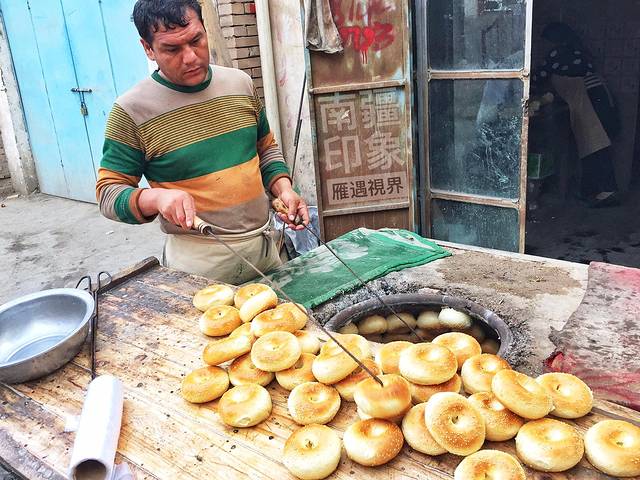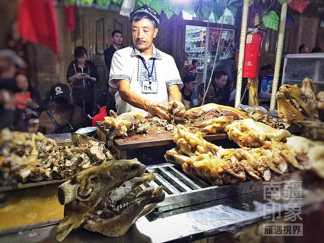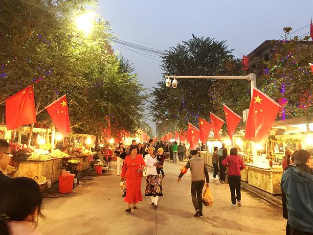 推荐理由:就在艾提尕尔民族文化旅游风景区,也就是艾提尕尔清真寺对出的马路对面(可从地下通道过马路)的欧尔达希克路,夜市入口设置围栏,需要经过安检才能进入,虽然麻烦,不过对于游客朋友来说非常安全。跟内陆城市的夜市一条街一样,各式新疆美食如烤肉串、酥脆烤鸽子、烤腰子、烤鹅蛋、老鸡汤煮鸡蛋、羊肚包肉、油塔子、烤羊肠子、酸奶刨冰、烤包子、烤鱼、胡辣羊蹄、椒麻鸡。自然也少不了面食素食朋友们喜欢的捏成花朵一样的素饺子、像脸盆大的烤馕、烤得金黄色的外焦里嫩的烤包子,和五颜六色的新鲜水果如超甜的无花果、红石榴汁,看得人垂涎欲滴,一时还无从下手。