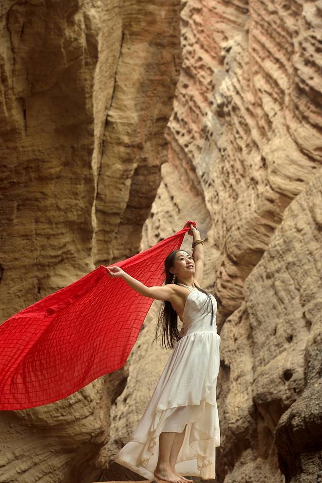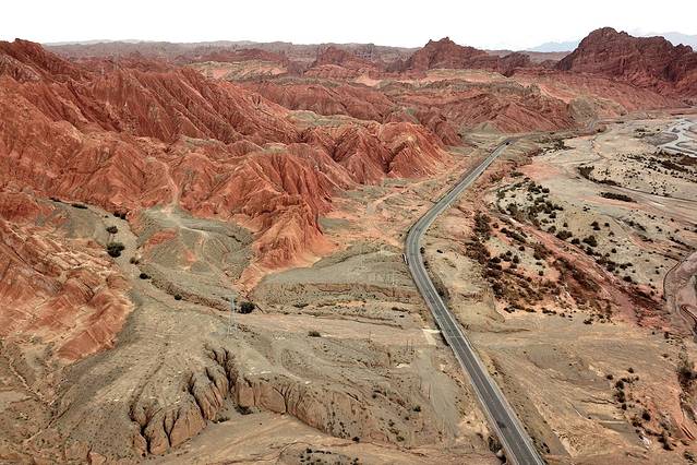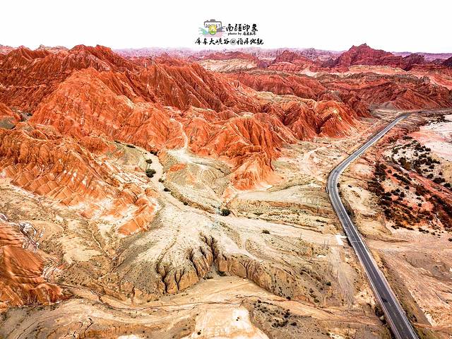 (2)第二段自驾选择从库车出发到库车大峡谷折返的独库公路(独库公路,从独山子到库车的公路。全长561公里、连接南北疆的公路。公路通车时间为5月-10月,最佳旅游时间为盛夏七八月份。因为我们出发前已经打听到天山公路独山子段已经封闭禁行了),这段单程70公里,也基本限速60公里,公路全程柏油路面,小轿车也轻松胜任。这段风景是以雅丹地貌为主,不时穿过矿区、戈壁,有让人穿越到了美国的西部大峡谷的感觉,需要提醒的是行驶在笔直的柏油路上千万不要图一时之快一脚油门到底哦,因为两边偶尔会出现流动测速的仪器(不怕扣分罚单的土豪请忽略)。(TIPS:到了盐水沟收费站就要拿区间测速放行条。到达大峡谷时间是一小时,在库车大峡谷景区外同样也有交警执勤)