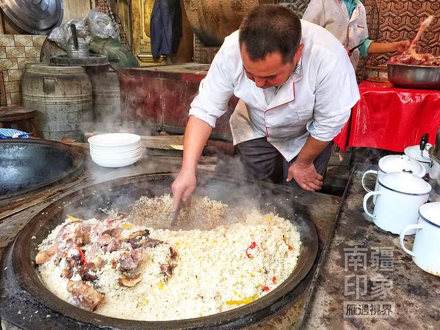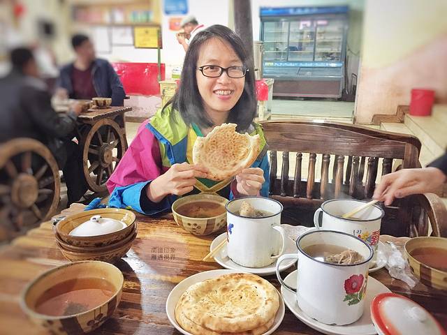 这里必须安利大家的是古法缸子肉,200克羊肉块放进搪瓷茶缸子里(我们南方以前叫大口盅),加入天山雪水,胡萝卜、双眼皮芽子,文火慢煮一小时后加盐,新疆大敊端来的就是三缸子香味扑鼻的炖羊肉,喝上一口汤,那里的幸福感现在仍回味无穷。