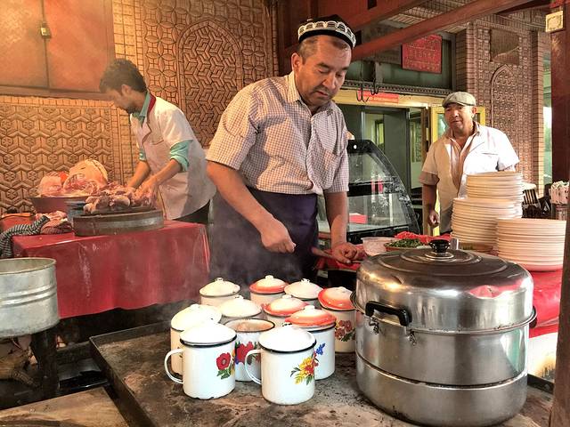 维吾尔人喜欢吃肉,但不食陈、腐之肉,也不吃腌、熏、腊干的肉食,食必新鲜牛羊肉。而吃清炖的大块羊肉具有“吃饭”意味,肉可解馋,肉汤可泡馕以饱腹,煮大块羊肉就成了民间里最受赶巴扎人喜欢的吃法之一。