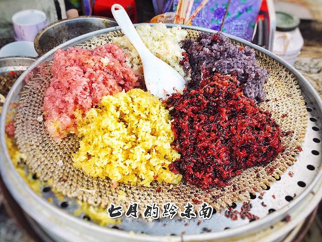 用植物染料上色的五色糯米饭。