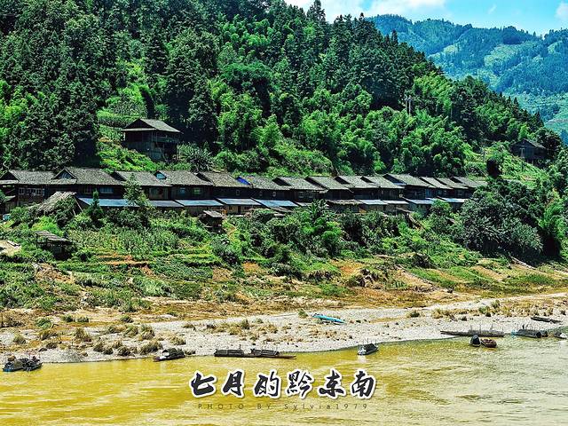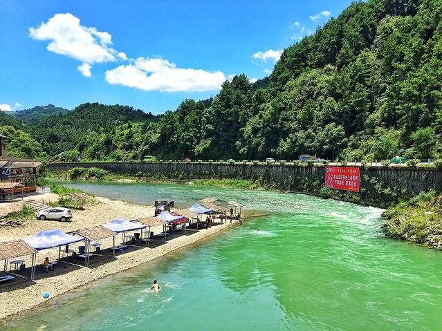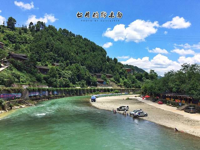 从凯里市开出了一个小时左右到了三棵树镇,翠绿的巴拉河开始映入眼帘,当地人就地取才开起了骞瓦苗乡度假村,周末来这里避暑的人还不少。