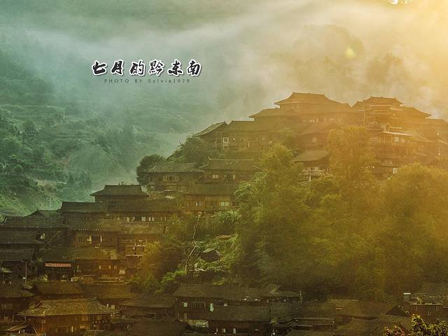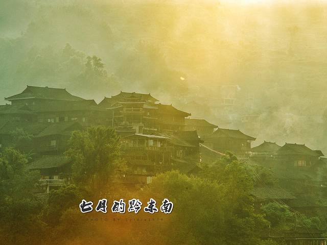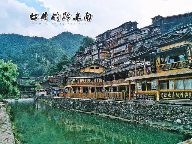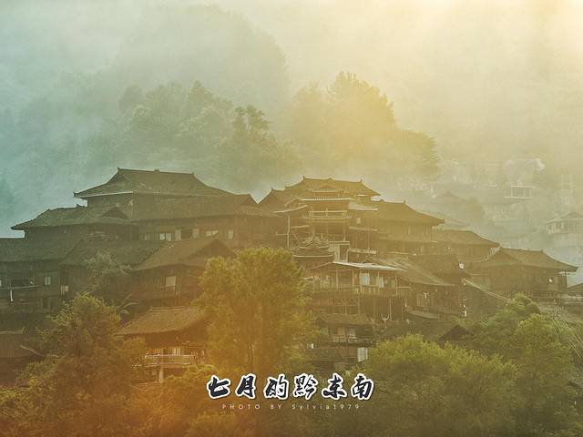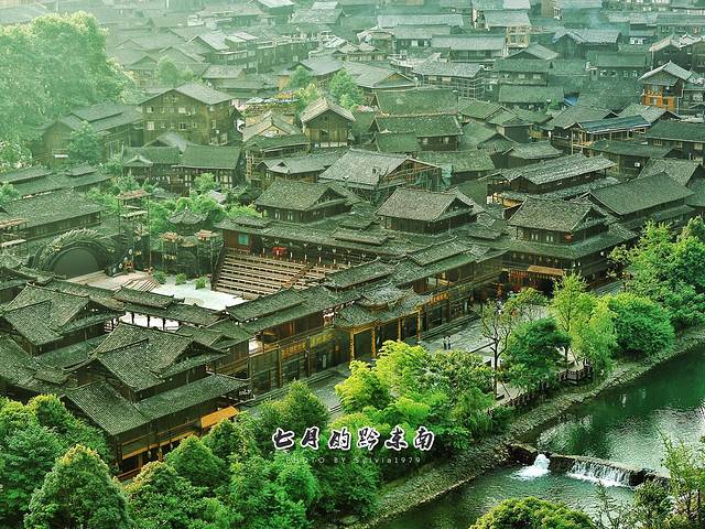 有1200多户的西江苗寨,是中国乃至世界上最庞大的苗族聚居村落,坐落于雷公山北麓崇山峻岭中的白水河谷,郁郁葱葱的森林和层层叠叠的梯田是尘土苗寨的自然背景。吊脚楼群中有脉络般网连的巷道,在曲折狭窄的吊脚楼间转悠、变化多端是鹅卵石屋基、古色古香的青瓦木楼,垂吊的玉米串、红辣椒,一步一景。