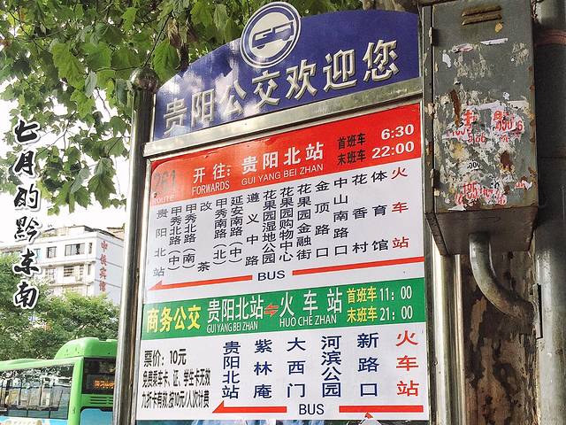 贵阳火车站是个重要的交通中转地,所以大部分的公交都可以在这里找到,当然去贵阳北站(高铁站)的公交261路也在这里。不过如果赶时间的话,可以在公交车站找到一些同样要去贵阳北站的人一起拼车去高铁站,我当时就找了几个拉着行李箱要去贵阳北站坐火车回家的大学生,半个多小时车程50块。