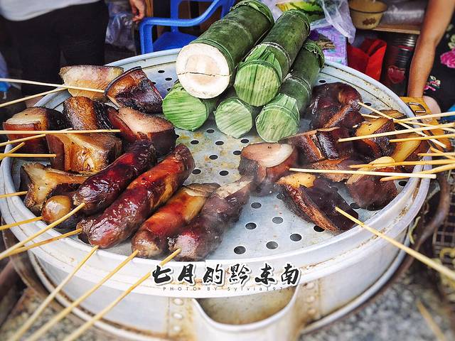 苗家竹筒饭、熏五花肉。