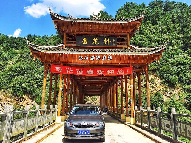 车子直接开过南花桥,右转上一段斜坡,就能直接到达南花苗寨。