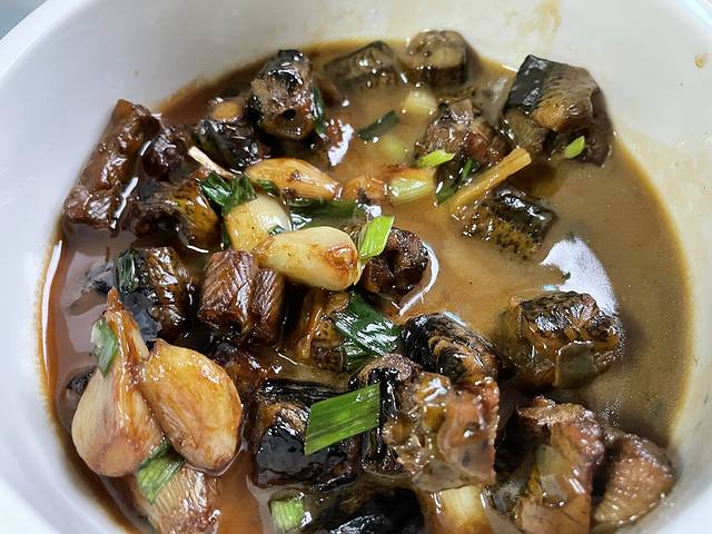 红烧黄鳝,看着做的时候挺残忍还有点恶心好像蛇一样,但吃的时候两眼放光o(* ̄︶ ̄*)o