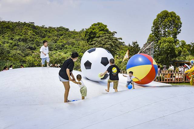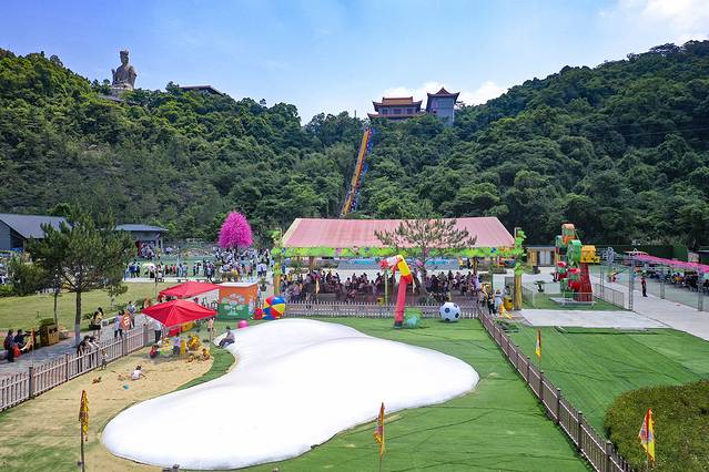 在这里可以转转福,看看五福林,小朋友可以蹦蹦云朵跳床,有一种天地任人蹦的感觉。