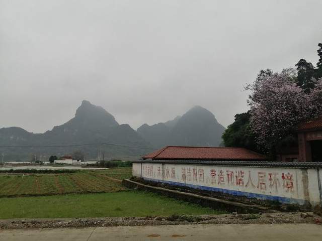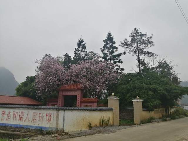 我们的第一站是到坡鉴革命烈士陵园,陵园位于马山县州圩村坡鉴屯,离永州镇政府有8公里,就在公路边。我们把车停在陵园对面的篮球场,这里有坡鉴文化活动室。陵园里好几棵粉红色的紫荆花已经怒放,走进去,陵园里还有松柏苍翠,显得宁静庄严肃穆。陵园里有革命烈士纪念碑,是为纪念1938年发生的、震惊中外的“八•三”惨案被害的四位烈士而建。