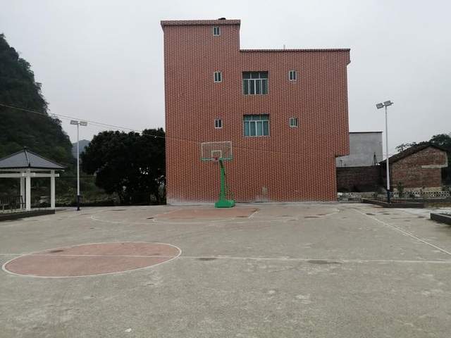 在陵园对面有个篮球场,