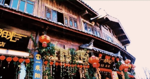 古镇上的“一米阳光”酒吧。一米阳光取名来自玉龙雪山的传说,也与一部电视剧同名。