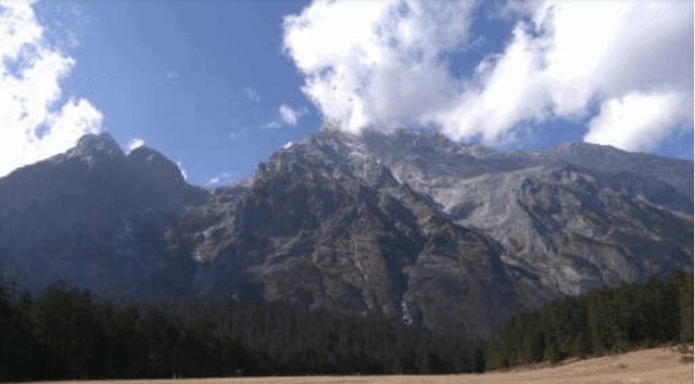 玉龙雪山的山脚处,有一湾蓝绿色的潭水,取名蓝月谷。水源来自雪水,清澈沉静。