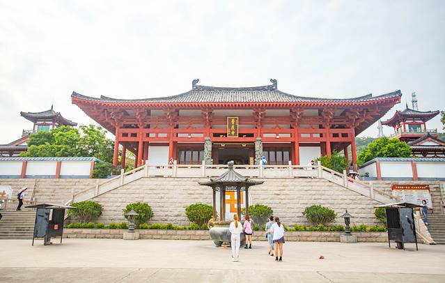 走进古刹,就可以看到气势恢宏的古建筑群。这些大都是汉唐风格的建筑,严整开朗、庄重大方、色调又简洁明快,游客也非常多。还有很多虔诚的信徒正在上香,氛围显得格外庄严肃穆。