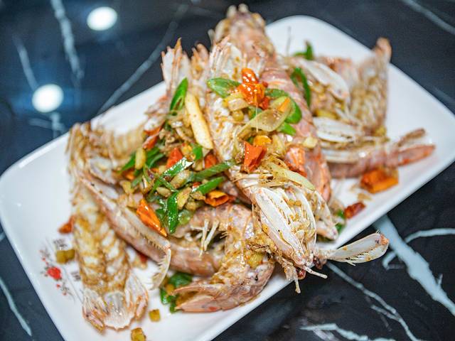 蒜蓉大龙虾,我感觉和香辣蟹一样,也算是招牌菜了,何况到海边旅行,不吃一条大龙虾,总感觉少了什么似的。从点完餐,我们就期待着大龙虾,期待着期待着就上桌了,汪姐的大龙虾处理的很干净,尤其是大龙虾的壳也加工的很碎。