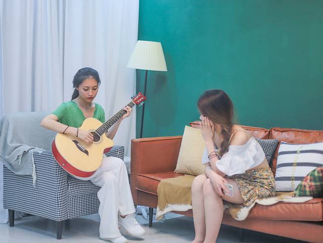 民宿三室两厅两卫,我们三个女孩子刚好住的下。房间里还有一把吉他,刚好朋友弹的一手好吉他,她特意弹给我们听。