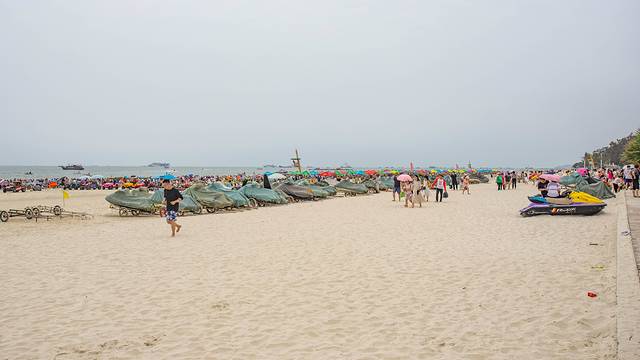 虽然今天的天气不好,略有些阴沉,但是沙滩上的游客还是很多的,毕竟也只有上班的打工人才会懂得,节假日的每一天都是很值得珍惜的。