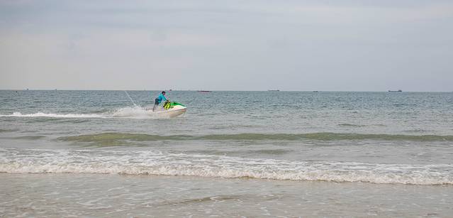 简单吃了顿午餐,随后当然要逛一逛的。所以下午我们来到了不远处的侨港海滩。它与北海银滩并列于北海电白寮港港口的两侧,滩面宽广绵长,沙子细腻柔软,海水温和洁净。