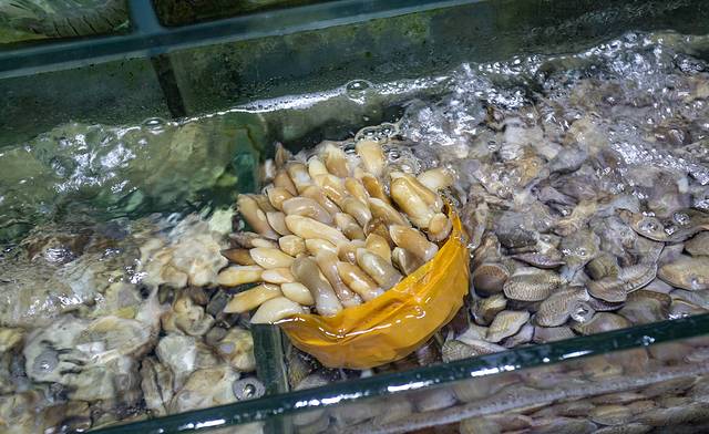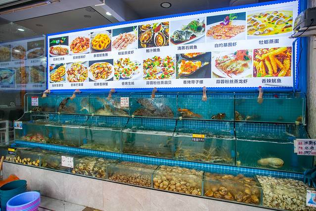 在门口的海鲜橱窗里点上一些海鲜,稍等一会,点好的美食佳肴便来到了我们的餐桌上。