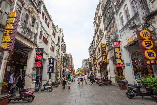 这条老街是一条有近二百年历史的老街,始建于1821年,最初的时候只有200米长,4米宽。随着各历史时期的不断发展,现已成为长1.44公里,宽9米,沿街全是中西合璧骑楼式建筑的商业老街。