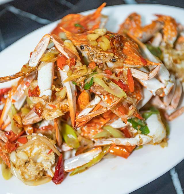 香辣蟹,据说是店里的招牌菜,口感自然没得说,所以我强烈推荐要尝尝。炒的新鲜又香辣,火候恰到好处,所以肉质也特别细嫩,虽然只有我们几个女生,但一会功夫就清盘了。