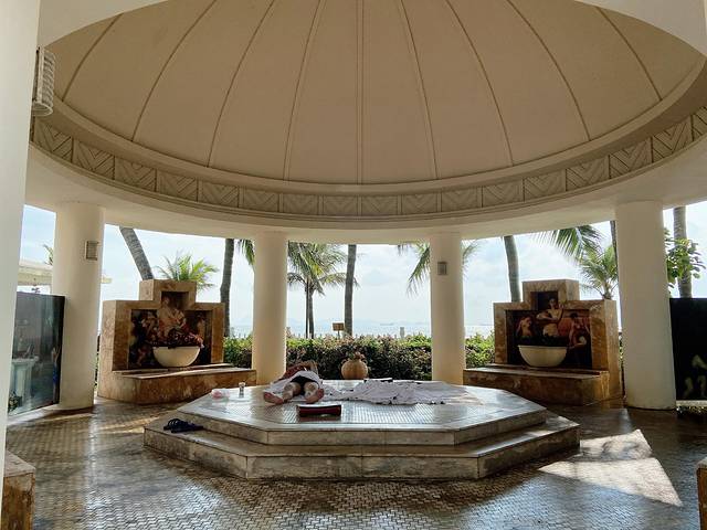 🍈第一次在海边泡温泉,感觉好特别,可以一边看海景一边舒舒服服地泡温泉,太棒了。因为里面有很多个温泉,大大小小加起来都得十几个,所以人员比较分散,不会全部人集中在一起像下饺子一样。