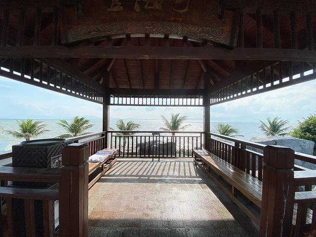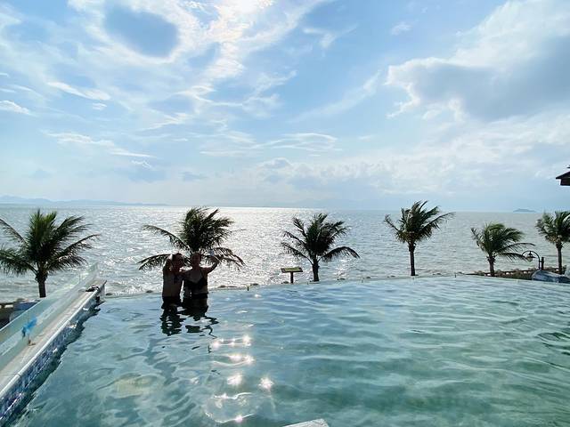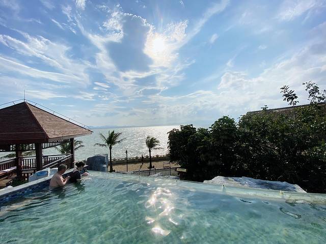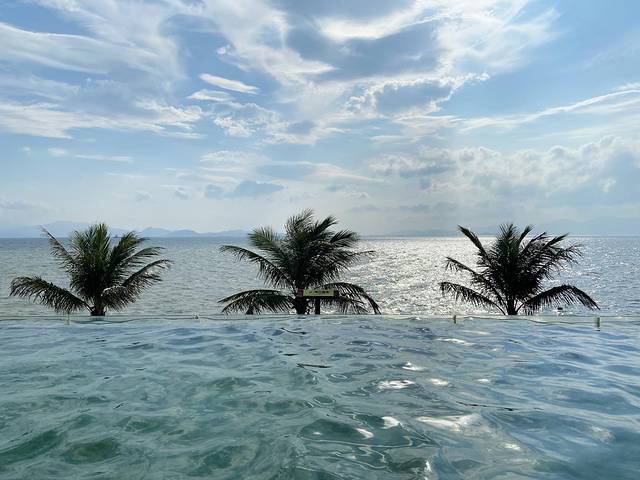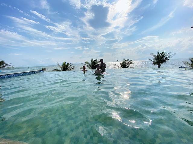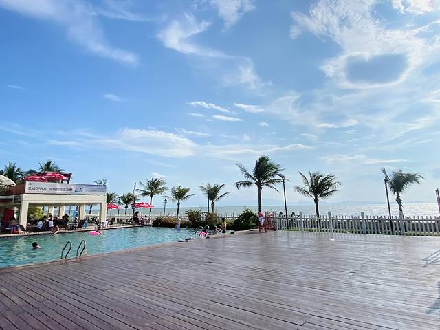 🍈景色超棒的无边际泳池,晴空万里,看着就很舒服。无边际泳池旁边有个望海亭,拍照也好看。