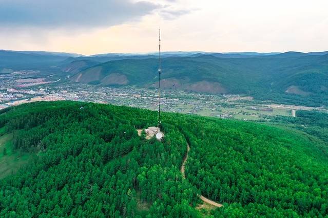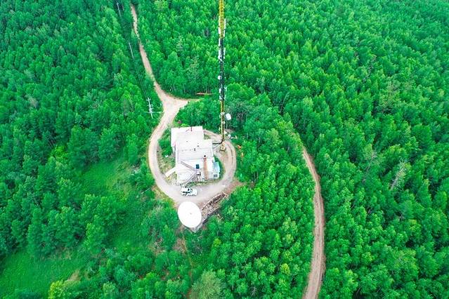 山顶有一座信号塔,信号 塔下 面的三层小楼有专门修建的楼梯,可以爬到屋顶,这个位置可以看到莫尔道嘎镇的全景。天气好的时候有落日有晚霞,今天的运气不好,云特别的厚并且有点阴,不过环视四周的无敌视野还是很漂亮的。