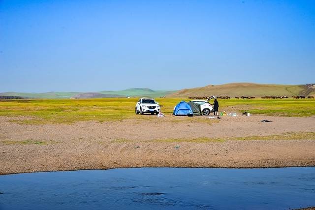 6、7、8、9这几个月份是来 呼伦贝尔 最好的季节,在路上可以看到很多自驾而来的游客,在河边搭起了帐篷,点燃了烤炉,小河边拿着吊杆优哉游哉的钓鱼。