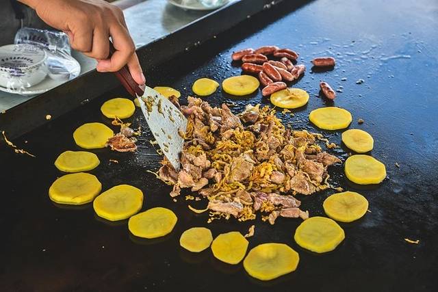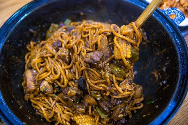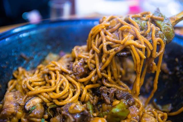 最后放个“毒”吧,希望你们不是在晚上看到这一段。旅行结束的最后一天回到 海拉尔 , 巴图 领队请我们去吃了当地特色的铁锅焖面,说实话我第一次,被惊艳到了。一口大铁锅满是北方特有的粗狂,牛肉、排骨、玉米、土豆加上口感劲道的面条,口味一绝,怪不得非要带我们来尝尝,有机会你们来呼伦 比尔 旅行的话,建议来尝一尝,想要找 巴图 领队一起玩,我给你们推荐。不说了,写到这又开始流口水了