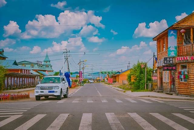 这边挨着室韦口岸,镇上有许多的当地特产和骑马的娱乐项目。
