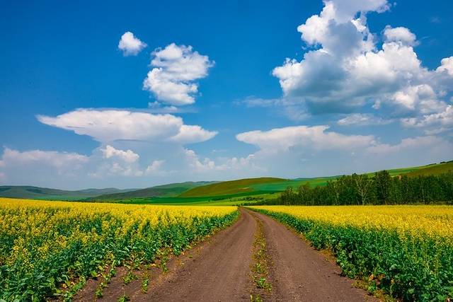 七月的 呼伦贝尔 ,晴空万里,微风清爽不燥。相比其他的地方不同,这里的油菜花开的比较晚,南方的油菜籽都已收获,这里才刚刚绽放。形式在广阔的大草原,一路都是惊喜,河流、草甸、白桦林,还有那是不是出现的满眼金黄。