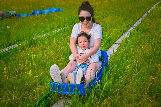 雨晴姐:颜值辣妈,喜欢挑战,集美貌与胆量于一身,骑马、滑草、悬崖秋千等,几乎路线里所有的刺激体验项目都拿下。
