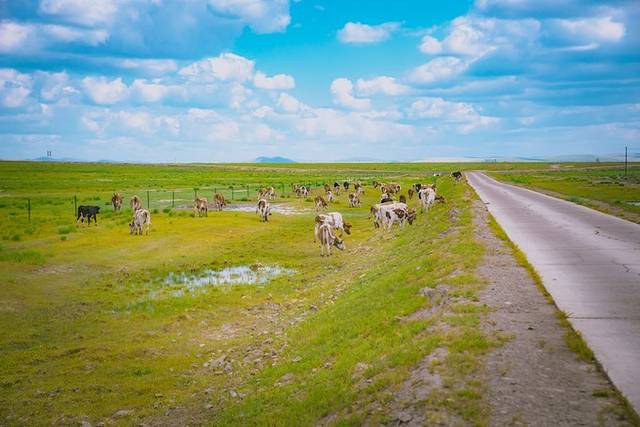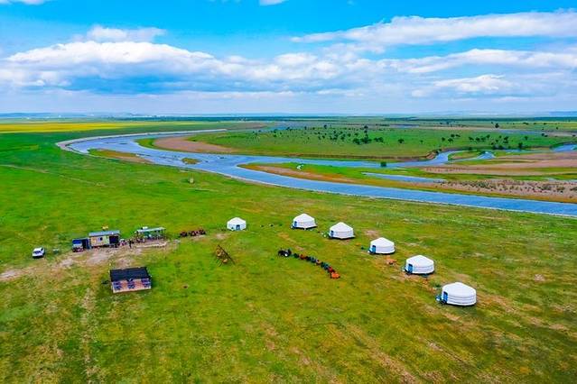 黑山头大部分都是以体验蒙族生活为主,周围全是各式各样的 蒙古 部落,也是整个行程中,最有草原生活气息的乡镇。蓝天白云,水草丰美,牛羊成群,一个个可爱的 蒙古 包连成一片,组成了草原独有的风光。