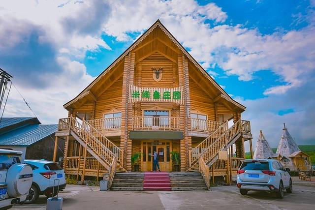 说实话我还是第一次听说有 俄罗斯 族这个民族,乡镇里大多建筑都是俄式的木刻楞房子,到这点正好是大中午饭点,主要街道上临街的都是当地的特色饭庄,马路边上还停放着一排排的多人自行车。