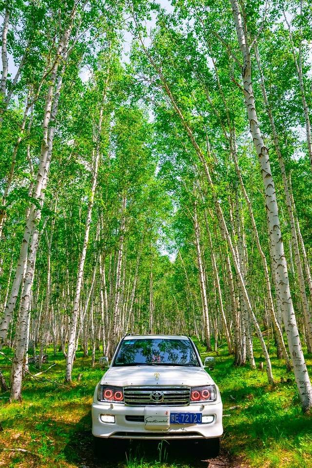 巴图 领队看出了我想法对我说,这几天草原上雨水不是特别的多,所以草地并不是很绿,稍微有一点影响视觉享受。我带你去一个好地方,绝对让你满意,这个地方是一个私家牧场,一般人都不让进去,里面除了植物茂盛、草甸浓密,还有一片白桦林,牧场是他朋友开的,不用花钱就能进去。