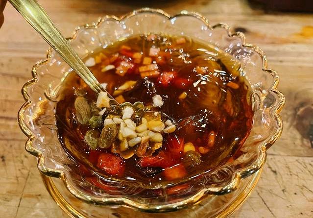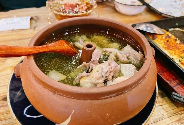 傍晚的时候我们在束河古镇找了一家环境超级好的餐厅吃了一餐美食,哇,真的是完美啊,我们是逛束河古镇到飞水触花景点旁边看到这家店,被门口鲜花吸引了,看着环境不错,肚子也饿,于是灵机一动,决定在这里解决晚餐,再回大研古城,事实证明,我们的选择是正确的,他家的特色小锅饭好好吃,米饭做的好香,汽锅鸡,烫超级鲜,好喝,包浆豆腐,外焦里嫩,吃起来舒服,还有老板免费送的冰凉粉,真的好好吃,老板娘是个美女,送的冰粉还那么好吃,真的是人美心善,难怪人气那么高,必须推荐大家也去尝尝!