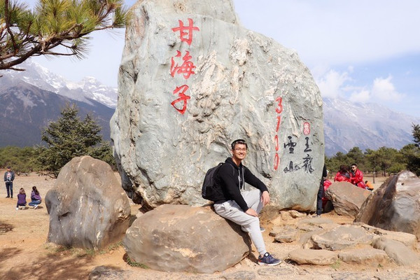 领队来接我们,启程前往玉龙雪山途中经过甘海子…此时只能以这个表情形容我的感受。嗯,3100m高峰可以纪念下…