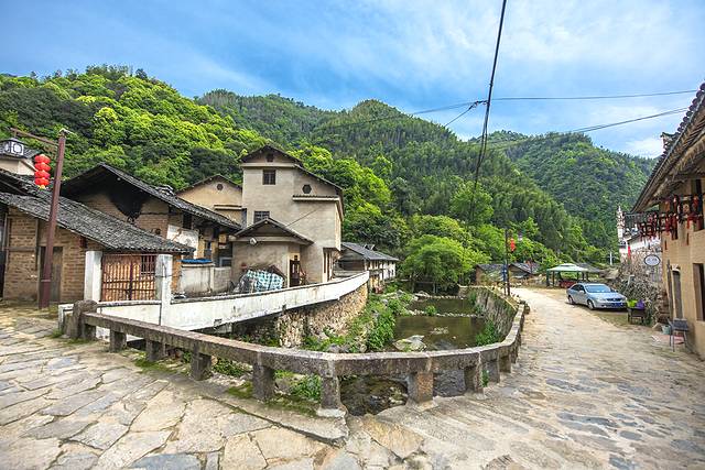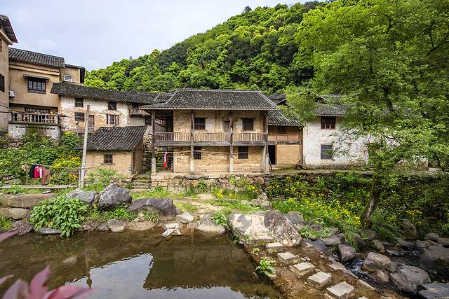 蔡畈古村背靠来龙山,面朝大金山,村边有永兴河如玉带环绕,村内有溪穿流,路边是一水的麻石道,地势起起伏伏,高高低低,小巷幽静,村庄温婉别致。