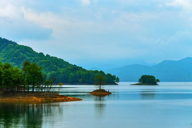 广阔的花亭湖,空气清新,风光绚丽,湖光山色,颇具韵味。湖面上岛屿星罗棋布,一岛一色;湖岸迂回曲折,港湾幽深;湖四周山峦起伏,青松翠柏郁郁葱葱。