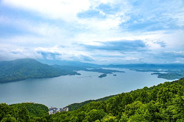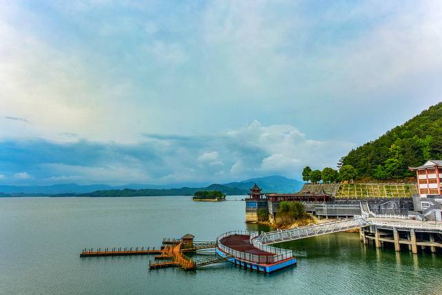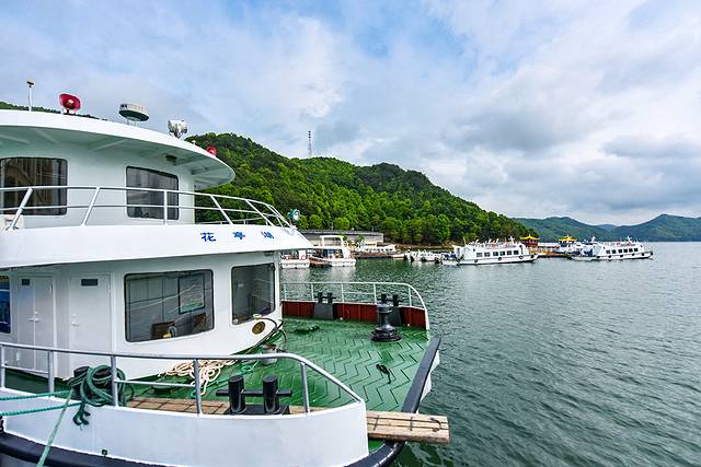 红星村之后前往花亭湖。花亭湖是安徽首批省级重点风景名胜区,它始建于1958年,整个湖面面积有70平方公里,其前身是花凉亭水库,如今则是集观光、度假、疗养、娱乐、休闲于一体的综合风景区。