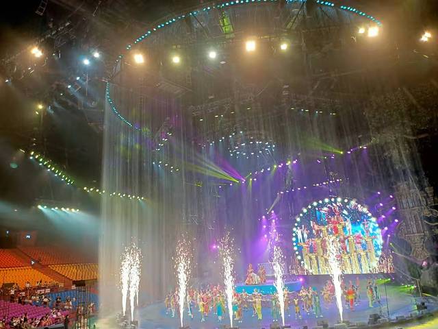 大马戏是5点就可以检票入园!演出时间19:30-20:50,想要坐好的位置一定要提前去,我5点10分到的时候,熊猫酒店专区第一排已经木有了,长隆酒店专区和普通座专区第一排还有很多。为什么要做第一排,因为中间有好多巡演,会有互动,小朋友真的很喜欢,巡演中间也有送小礼物,但大部分都是扔向有钱区(前排VIP之类的)。大马戏内容很丰富,没有纯动物表演,比较人性化吧,动物们出来基本就是溜达一圈,主要是人表演,现场看还蛮惊心动魄的,个人觉得大马戏还是物有所值。