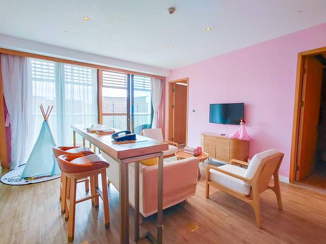 我入住了小公主双卧房,19层的高视角能够俯瞰整个红树林度假世界,我宣布这就是本在逃公主的后花园咯~房间里采光很好,大口的呼吸能感受到阳光的味道钻入鼻腔,以嫩嫩的鹅黄色为主色调,低饱和度的颜色很柔和,让眼睛很舒服。白色的纱幔点缀,伴着三亚徐徐的海风轻轻摆动,格外的温柔又浪漫。