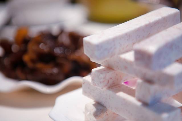 在锅子里涮香芋还是第一次尝试,海南香芋本身就微甜,煮好后软软糯糯,筷子一夹就可以从中间分开。配菜里的白玉菇,生菜,黑木耳也都很新鲜。