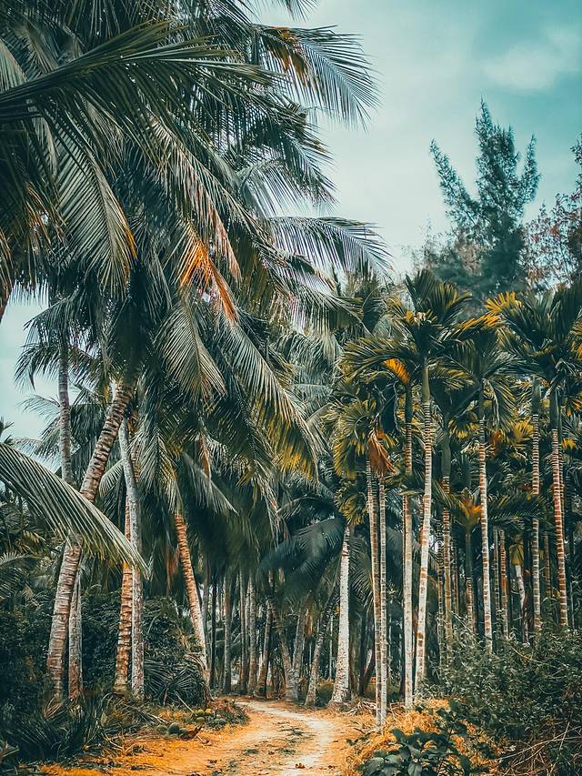 2.椰子林里拍荒野求生的感觉,可以拖一片干枯的椰子树叶,也可以站在林中摆出那种明天就世界末日了但关我何事的表情